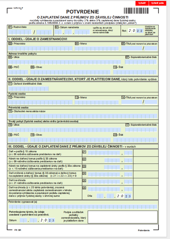 - oznámte zamestnávateľovi, že máte záujem darovať 2% do 15. 2. 2026